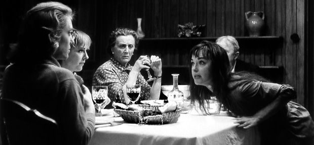 The infamous 1933 Papin Sisters murders are filtered through the dramatic cheesecloth of Jean Genet (long-time associate and would-be lover of director Nikos Papadakis) in this incendiary tale of two sisters (ferociously played by two real-life sisters, Francine and Colette Bergé) driven to madness, bestiality and revenge via years of mistreatment as the work-slaves of a decadent, rotted-from-within aristocratic family. The film created an uproar upon its release, with a wave of prominent French intellectuals taking up its cause: they eventually succeeded in getting the film shown at Cannes, where it received a tumultuously mixed reception.